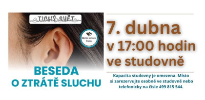 Beseda o ztrátě sluchu se uskuteční v úterý 7. dubna v 17:00 hodin ve studovně.