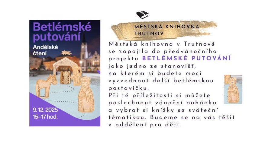 Při té příležitosti si můžete poslechnout vánoční pohádku a vybrat si knížky se sváteční tématikou. Budeme se na vás těšit v oddělení pro děti.