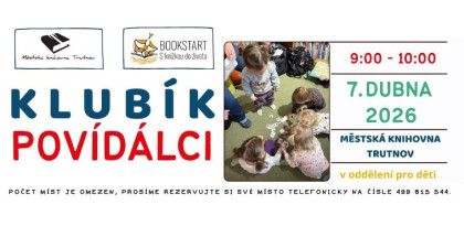 V rámci mezinárodního projektu Bookstart, do kterého je zapojena i naše knihovna, zveme rodiče s malými dětmi na setkání klubíku Povídálci, které se uskuteční v úterý 7. dubna od 9:00 do 10:00 hod. Tato akce je určena dětem a rodičům na mateřské dovolené, program probíhá volnou formou a je přizpůsoben věku a počtu přítomných dětí.