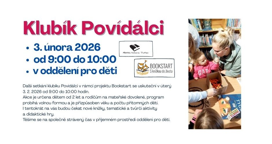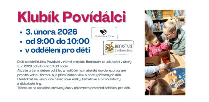 Akce je určena dětem od 2 let s rodiči. I tentokrát se můžete těšit na nové knížky, tematické a tvůrčí aktivity, didaktické hry a společně strávený čas v příjemném prostředí oddělení pro děti. Program probíhá volnou formou a je přizpůsoben věku a počtu přítomných dětí.