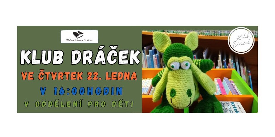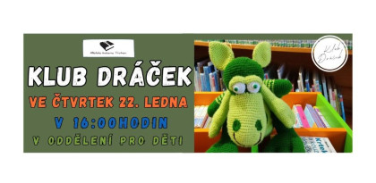 Zveme všechny malé čtenáře se zájmem o nové knihy a informace na další setkání klubu Dráček, které se uskuteční ve čtvrtek 22. ledna od 16:00 do 17:00 hodin v oddělení pro děti.