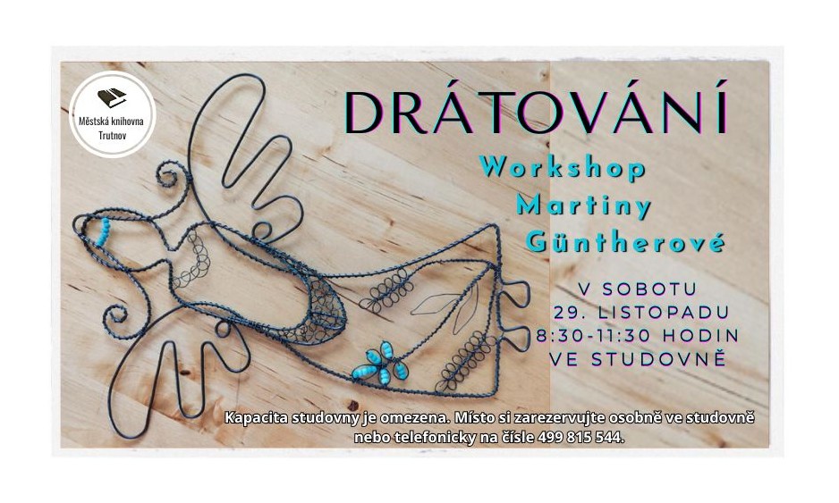 Workshop je zpoplatněn, kapacita míst je omezena. Další informace ohledně přihlášení a organizace zájemcům poskytneme osobně ve studovně, telefonicky na čísle 499 815 544 nebo přes e-mail studovna@mktrutnov.cz.