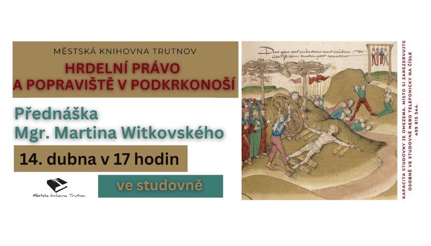 Na přednášce nám tentokrát pan Witkowski přiblíží historii hrdelního práva na území celého Podkrkonoší (s hlubším zaměřením na Trutnovsko). Vrátíme se zpět do časů zlodějů, šejdířů, ale i vrahů a také těch, kdo jejich činy trestali – tedy katů, rasů a pohodných. Povíme si, kde měla města v našem regionu svá popraviště, jak zdejší popraviště vypadaly, jak se postupem času vyvíjely, zda se zde uplatňovalo útrpné právo atd.