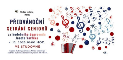 Programem bude provázet pan Josef Vavřík, který k posezení nám zahraje na harmoniku. Přijďte si společně poslechnout a zazpívat známé lidové písničky a užít předvánoční čas.