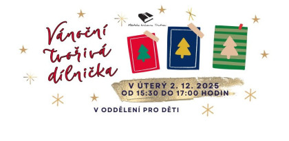 Přijďte se vánočně naladit a strávit příjemné odpoledne v knihovně. Adventní období si zpříjemníme vánočním tvořením. Společně si vyrobíme ozdoby z plyšových drátků a originální vánoční přáníčka. Těšíme se na Vás v oddělení pro děti.